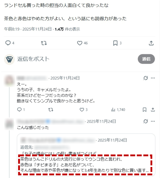 なんと一部の投稿では、「茶色は『うんこドリル』の大流行に伴って、子どもたちの間で『ウンコ色』と言われてしまう」という、耳を疑うようなエピソードが語られていたのです。