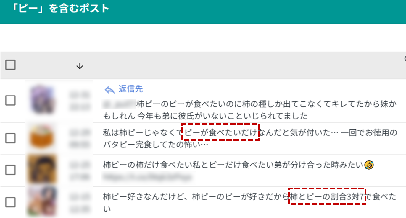 ひと際目立つ大きさの「ピー」。「柿ピー」とは別に「ピー」という単語を使っているユーザーが多いんですね。それでは実際のポストを見てみましょう。