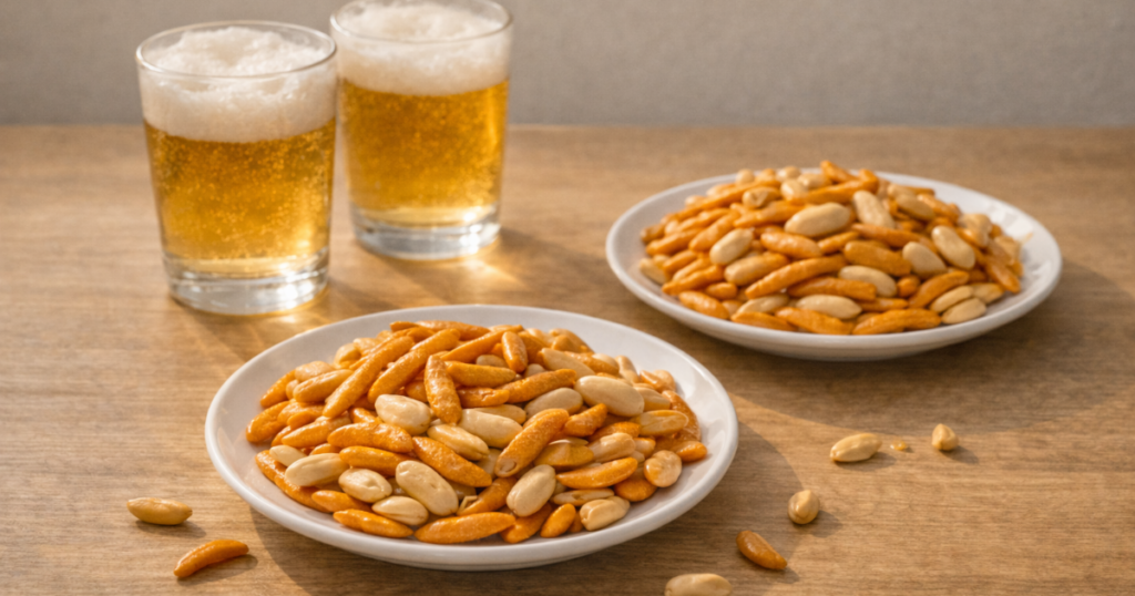 深夜に小腹が空いたとき、これもわかりますね。柿ピーってこういうシチュエーションにぴったりな商品ですよね。小分けになってるものも多いし、スナック系よりは罪悪感も少ない(気のせい)。
