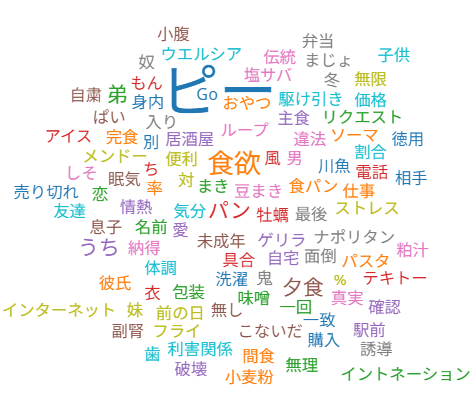 さて、ここでクラスタリングも見てみましょう。どのようなワードが同時に投稿されているのか、、