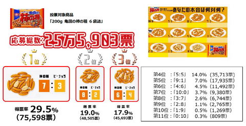 どうやら柿ピーでも有名な亀田製菓が、この割合論争に対してユーザーに投票形式で信を問うキャンペーンを行っていたみたいです(2019年)。
