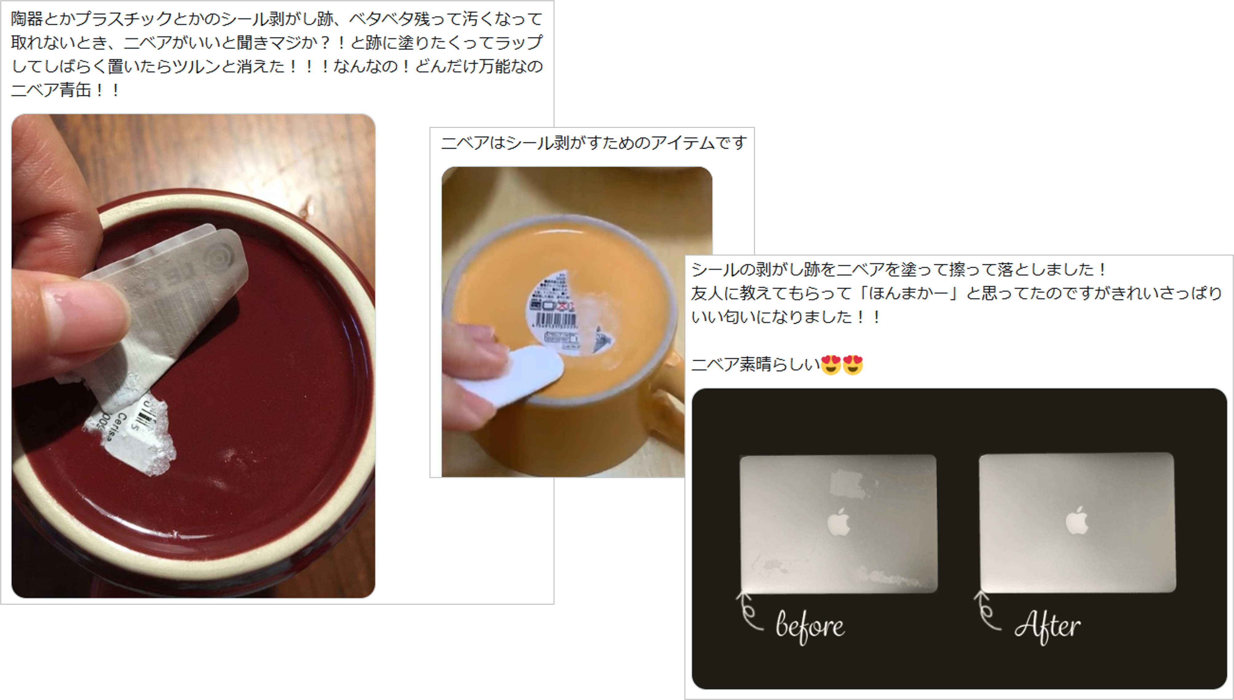 なんとこのユーザーは、そんなテープ跡を剥がすのにニベアを使っていました!
